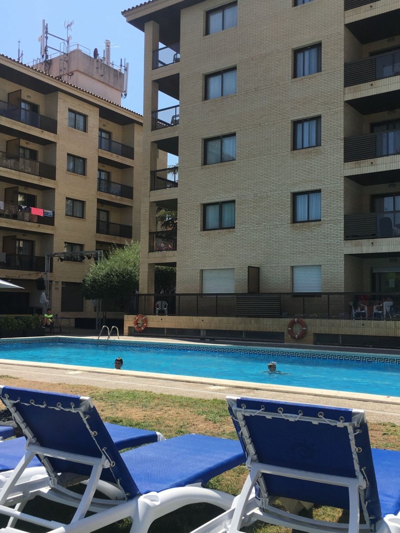 Hem esmorzat a la fresca (ai mare com ho trobaré a faltar), hem llegit i fet deures i ens hem abat a remullar a la piscina a quart de dues. Quan hem arribat estava tot ple, però en mitja hora ja no quedava ningú. Com que a les 13 h feia una calor insuportable ens hem capbussat de seguida.