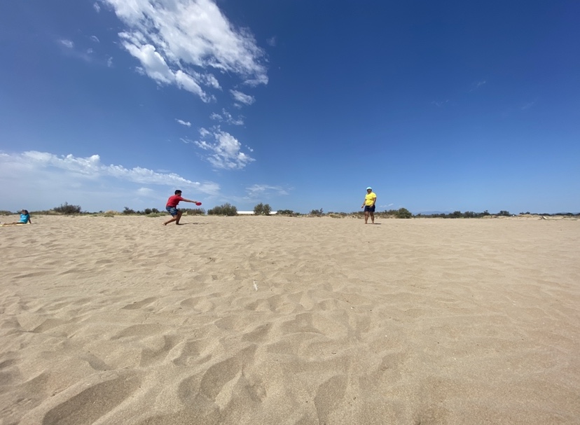 Com que semblava que el sol aguantava hem decidit anar a la platja. No feia molta calor, així que ni m’he tret la camisola. En Xavi, però, ha plantat les ombrel·les (a falta d’una anem amb dues) i les ha hagut de posar a contravent per por que li marxessin volant. L’Arnau i jo hem jugat a pales, en Xavi i la Martina al frisbee. Us he de dir que sí, compartir una partideta de pales, als 15 ja val la pena. Fins llavors acabes les partides amb lumbago de tant ajupir-se. Després hem canviat les tornes però la Martina i jo ens hem assegut a xerrar. Hem vist a un socorrista en acció, una noia portava una picada de medusa a la galta del cul esquerra. Després m’he dedicat a la lectura que és una de les coses més meravelloses que hi ha. M’encanta llegir i l’estiu és el millor moment. Ara que tinc l’app de l’E-biblio al mòbil encara llegeixo més, perquè el llibre sempre el porto a sobre. Però ara, a l’estiu, el paper, passar pàgines i posar el punt son tres coses que m’encanten.