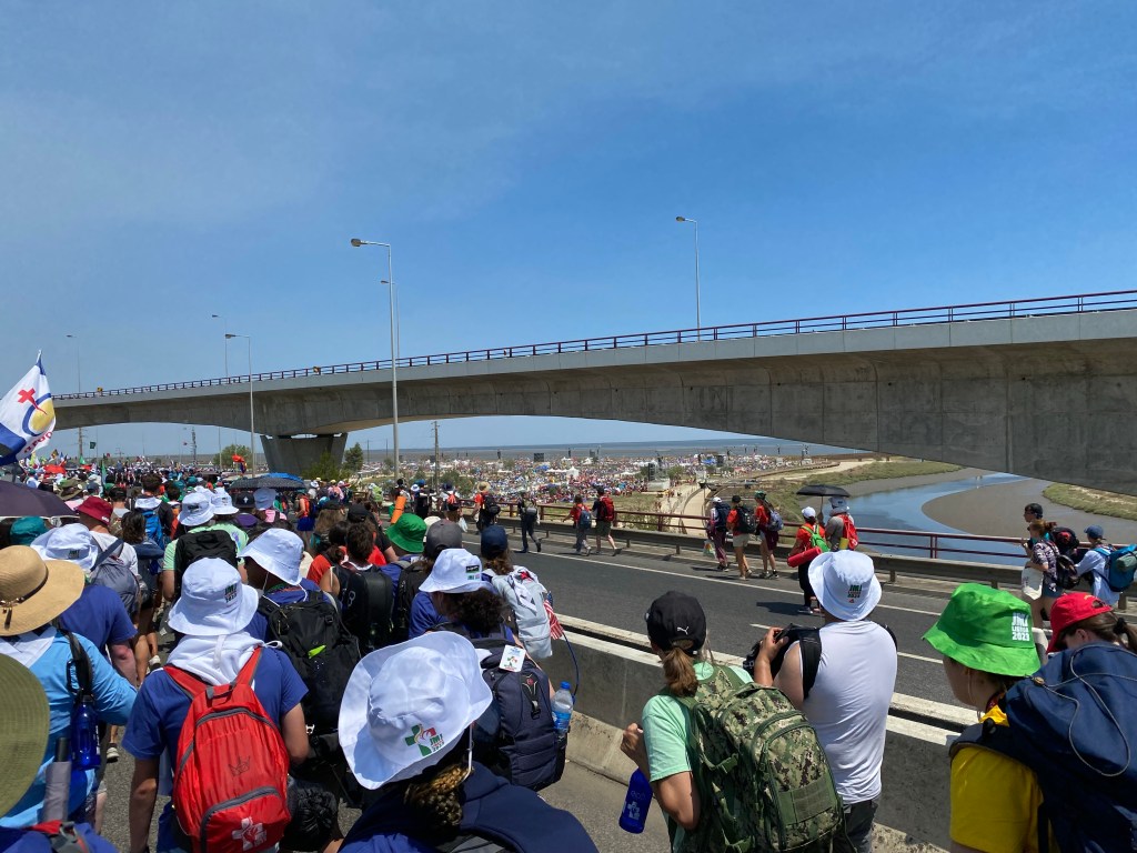 Hem caminat uns 13 km. Les meves sabates noves han estat una bona compra però quan Jesús va dir deixeu que els nens vinguin a mi, no ens ho deia nosaltres. Amb 47 tacos estem contents d’haver vingut i compartit moments difícils d’explicar, però amb la certesa que si es diu la jornada mundial de la juventut és perquè només ells son capaços d’aguantar el ritme que mereix. Ai la juventud!
